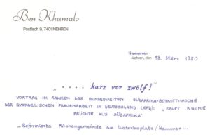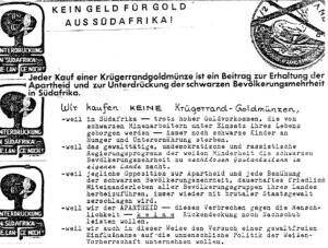 [siehe auch >> „Apartheid tötet – boykottiert Südafrika!“ Plakate der westdeutschen Anti-Apartheid-Bewegung]