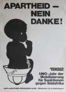 [siehe auch >> „Apartheid tötet – boykottiert Südafrika!“ Plakate der westdeutschen Anti-Apartheid-Bewegung]